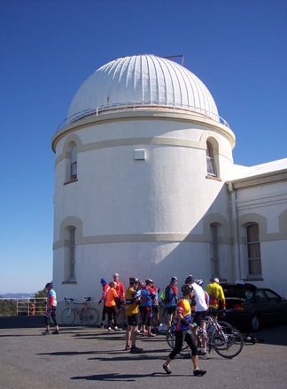 The feed zone with one of the smaller telescope domes in the background. This was the turning around point for some of the riders as time constraints had them turn back to San Jose, but I think about 18 continued on. Judy Huang and I volunteered to provide support to the riders -- I would do the full loop, and Judy would plan on meeting up with us at the Cafe. During the descent toward the Cafe, the support came in handy -- not for the riders, but for three crashed motorcyclists. Two of their bikes were un-rideable. With no one available to help out in the lonely outback except yours truly, I sagged in two of the cyclists to the firehouse, the third was able to still ride his motorcycle. The motorcyclists did not want an ambulance, or worse, a helicopter ride, because (we learned later) their respective mothers would have been very, very upset!! Apparently, they were novice riders and had been goofing around. The injuries were only to one rider and were not life-threatening, but he did fracture his foot. After being checked out by the paramedics at the station, we were able to transfer the riders over to Judy's car and have her descend down the mountain to one of the friend's of the injured rider, and I could then stay behind with the lunches and snacks for the riders.