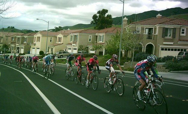 2007 Tour of California on Piedmont south of Calavaras Road in Milpitas. From this location you can see riders descend Calavaras Road from a distance, and then watch them pass by twice. Photo by W. Kageyama