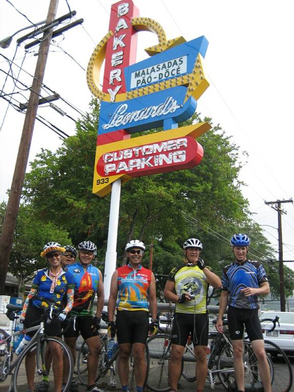 Leaving Hawaii Kai behind, we rode again in the steady drizzle that we had escaped for a brief period. Reaching Kahala, we were awed by the fabulous homes in that area. Soon, however, we were riding through the outskirts of Waikiki and on our way to Leonard’s Bakery. The familiar sign to this well-known malasadas-maker greeted us as we rode into the parking lot. We had ridden 28 miles, and we were hungry!