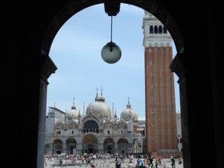Although we had been to Venezia 20 years ago, it was a good revisit to Piazza San Marco and finally tour the Doge's Palace and Correr Museum. We followed Rick Steves' guide and went to the prison under the Doge's Palace. These cells are at water level or below---yuck, there were no lights back then and can't even imagine when the water level rose and washed into the cells. Ken climbed up to the window and took pictures of the Bridge of Sighs from the back side. Venetian architecture is so beautiful and unique--nothing like it elsewhere. Neighbor islands Burano and Torcello provided relief from the wall-to-wall people on Venezia. Burano surprised us with its multi-colored homes, each painted a different color from its neighbors. It reminded me of travel photos I'd seen in books. The church in Torcello is the best place to see the mosaics close up without the tour bus loads of people in Venezia.