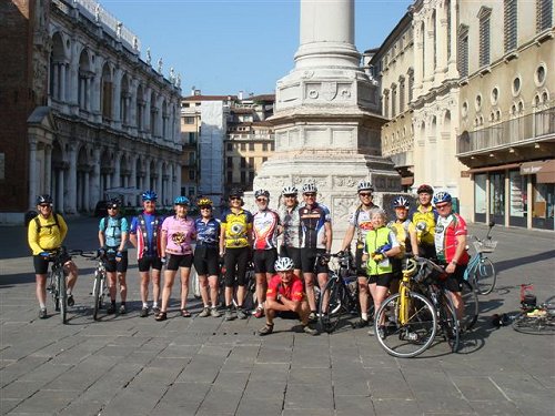 We rode to the cities of Vicenza, Verona, Padova and Venezia on the last week. It was very hot and humid. A major accomplishment by Ellie, Corinne and Laurie: they rode their first 100K ride on one of the days. We rode on the main roads with heavy truck traffic --- something I would never do here. Italians may be aggressive drivers, but their driving skills are levels above drivers here and they really do share the road. It's also normal to expect vehicles on bike paths as well as being passed by cars that were as close as a foot from my front wheel. None of the roads had glass; potholes and ruts--yes, but no glass.