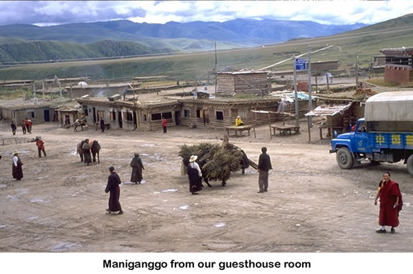 In any case we had arrived, after a long, cold, rainy ride, at a fairly large village called Maniganggo. We found a guest house just after dark in a misty half-rain and were very tired and cold. Once we got into our room, we took a few minutes to talk about what we were going to do tomorrow. We knew that we had a very hard day in front of us. It was supposed to be about 25k to the top of the next pass which our map showed to be 4,916 meters high (16,124 feet, nearly 4,000 feet higher than Maniganggo). After that it was another 41k to the next village and we really had no idea of whether it would be downhill, rolling, or what.