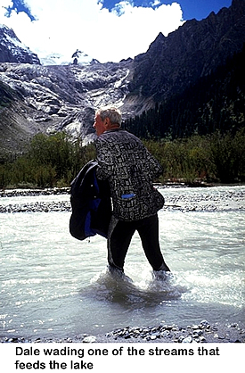 The man shouted something but I didn't look back. "He'll do it for 10 yuan," Ruth called to me. "Sounds like a good price," I answered, but kept wading toward the other side. "Take him up on it. This river is too deep for you." If the water was up to my chest, it would be up to Ruth's chin. Oh, and did I mention that this was a glacier-fed lake?