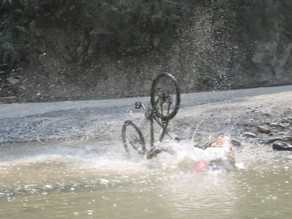 We had to cross a river at the bottom of a long hill. "Don't slow down", our guide warned us.