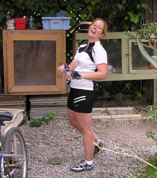 Jan reaching the top of yet another hill which I failed to note on the route sheet. Any forgiveness for this transgression is probably far in the future.