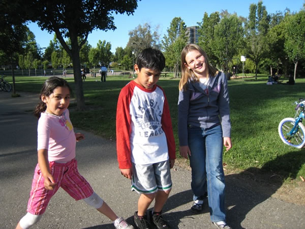 Tanvi & Ishaan Sharma and Megan Thomas with lots of energy at the end of the ride. |