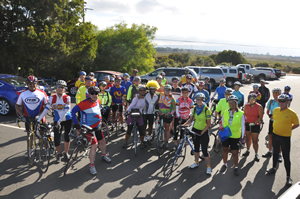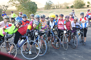 What involves 30 FFBC members, 8 guests from other Bike Clubs, 21 miles, 600 feet of climbing, 10 boxes of Mountain Dew, Anderson’s Bakery, chalk, cake, feathers, and lemon bars at the conclusion? Well, it’s Walt Thomas' 7th Annual Rolling Birthday Ride, of course! |
