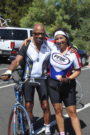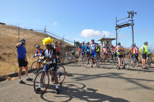 This year Walt’s Birthday Ride had a total of 37 riders, with members from the FFBC, Valley Spokesmen, Oakland Yellow Jackets, Grizzly Peak Cyclists, Golden Gate Cyclists, and Hike and Bike Clubs. This year’s route was a tad different. The start was at Don Edwards Wildlife center and the destination for lunch was Anderson’s Bakery, in Union City. Walt kept up his yearly tradition of riding up Nike Hill, and most of the group was happy to keep him company on his climb. He was happy to see Nike Hill chalked up in Birthday wishes, and of course a few photo ops were necessary once everyone reached the top!