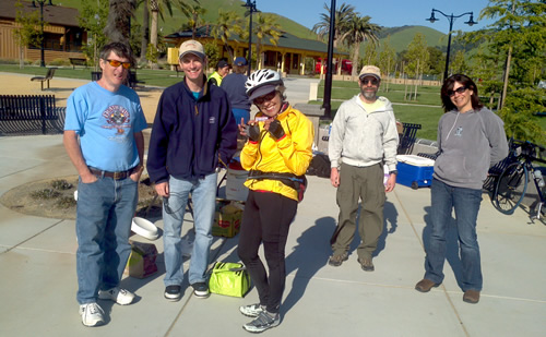 As things got closer to ride day, there were more and more volunteers. Jan Green and Luis Facha ran both the Jose Higuera Adobe Rest Stop and the water stop at Palo Verde. Todd Tracy helped at both Jose Higuera and Dublin. Jeni Finch also did two rest stop duty. Kim Daniel helped at Jose Higuera and then ran the return stop at Niles, along with Gary Smith. Gary helped at check-in as did Ken Goldman. Creighton Chong and Dave Ransom volunteered for SAG wagon duty without accepting any gas money. The semi-supported ride had turned into a regularly supported ride with a good number of rest stops and plenty of food. All of the food was basically one (big) trip to Costco. Food buy was based on 80 people and the extra riders allowed for purchase of ice cream treats and sodas at the end back in Niles. Several people signed up for the 70 K route, and that was added as an option.
