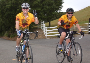 New members to the team, and the FFBC, are a father and son team. Curtis Hunter and his son Harrison, who recently turned 14 at the end of May, have joined. They are new to FFBC and group riding, but in just a few months they have accumulated an impressive resume. So far this year they have ridden the FFBC Progressive rides, the Primavera 2011, Tierra Bella, Petaluma’s Back Country Challenge, and their first 100 miler at Santa Rosa’s Wine Country Century. Curtis and Harrison will be riding the challenging 120K at the Tour de Cure.