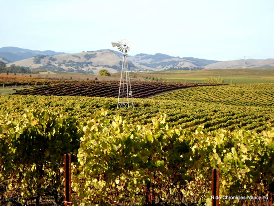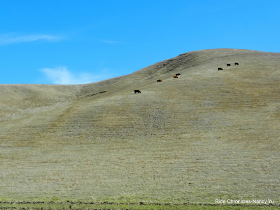 There is a large turnout for this early autumn ride. The weather is fabulous; it’s sunny and warm. Lori and Ron do a wonderful job of keeping the group together and everyone is having a great time. The run along the quiet country back road on Highland and Collier Canyon is absolutely beautiful! The area is dotted with old farmhouses, ranches, cattle and horses. The rolling hillsides are very calming and mesmerizing.