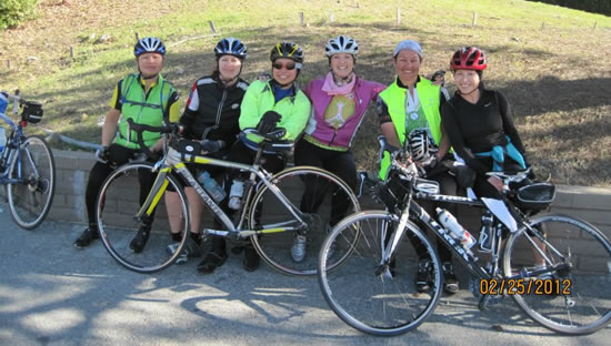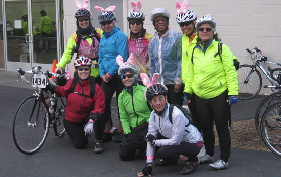The Hot Pinks ready to start 2012 Cinderella Ride! Whoo hoo, did 31 miles before we gave up wet and cold and