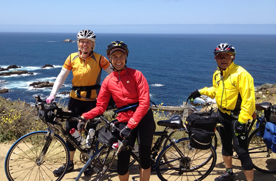 This multi-day trip was supposed to start in White Fish, Montana. Alas, the Montana ride sold out, so Tina, Rochelle, Ed and I came up with the Central Coast Tour. Unfortunately for Rochelle, she couldn’t join us as she sustained serious injuries from a bike crash two weeks before our trip. We included Rochelle in our pictures to give her and us the feeling that she was with us, albeit in spirit.