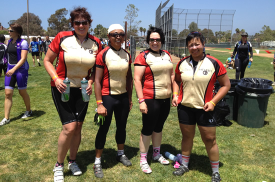 Vicki, Joy, Teresa, and Pam sporting their Columbus jerseys