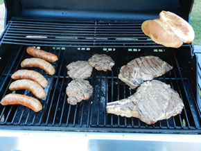 Upon completion of the ride, everyone headed for the pool and hot tub at the hotel where a well deserved soak in the hot tub was enjoyed. We started with beer, wine and snacks after the ride, which was followed by a nice BarBQ poolside. Dinner was potluck with everyone pitching in for a great dinner. We had a nice tossed salad, baked beans, steaks, hamburgers, sausages, and strawberry-blueberry pies compliments of Ron Mitchell. The food was either brought from home or purchased across the street at Raleys market. The dinner was great and the ride was a big success. RonR immediately booked his room for next year while trying to recruit us for another ride next year. The rest of us were too tired to make that decision now. I'll let my body rest awhile before I commit to another 74 mile and 4,000 foot ride! LOL