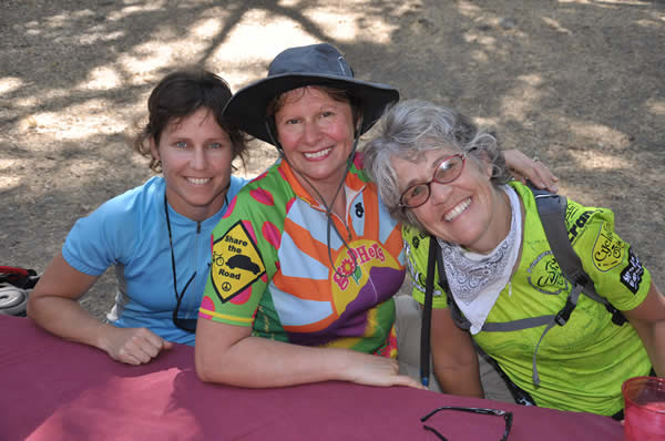 Heather, Ashley, and Terri doing their "Good Turn Daily" at the Sunol Rest Stop for the 2012 Primavera Century