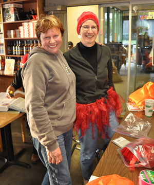 Julie models a knit cap & skirt Heather made for ALC9 |