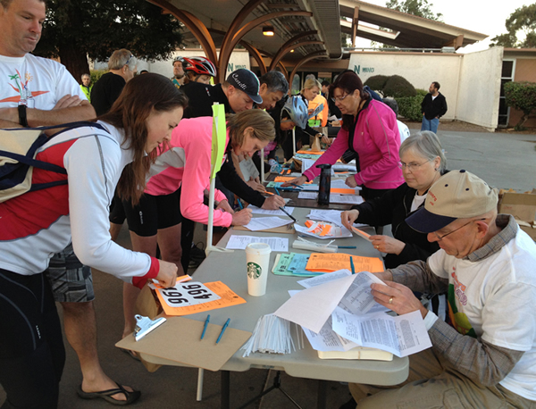 Checking in the riders at Mission San Jose High School, our new start and finish location