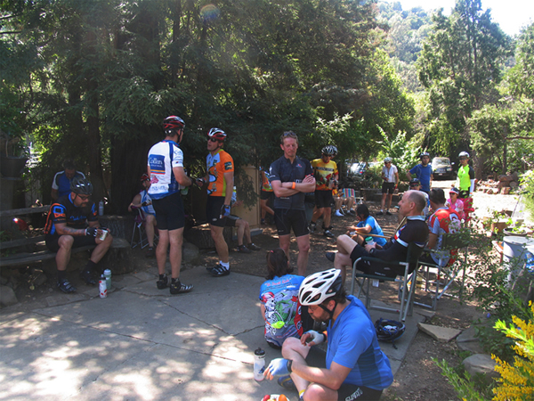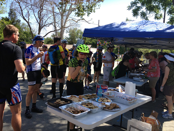 Everyone enjoying a little shade and the baked goods at the Sunol Rest Stop!
