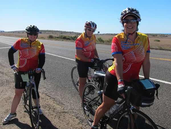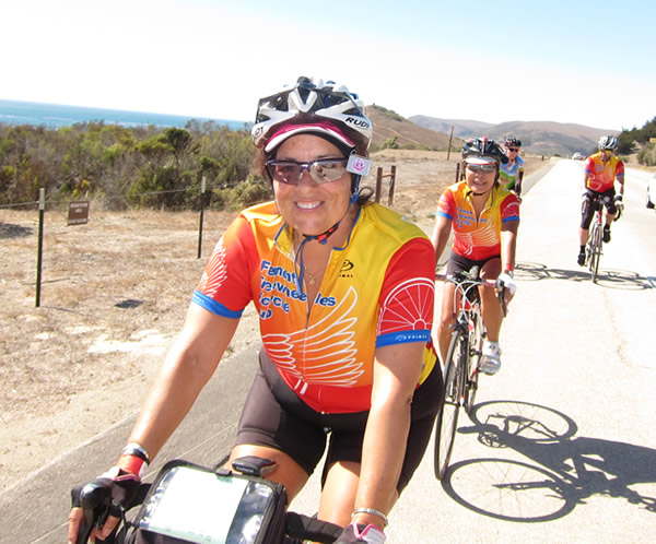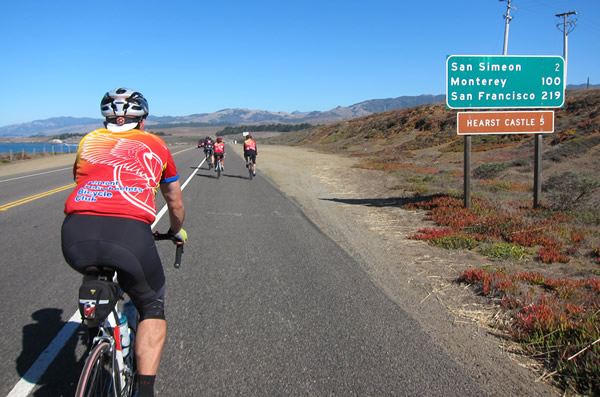 The morning of the ride the skies were clear and beautiful, but the riders were faced with gusts of wind coming from every direction. Fortunately, this did not continue all day and the weather only improved as the day progressed. What the riders did enjoy was great view of turquoise ocean, scarecrows taking over the town of Cambria, zebras running about Hearst Castle, clear views of Piedras Blancas Light Station, lots of opportunity to eat and sample great food and good times along the miles. A truly memorable ride and day had by all!