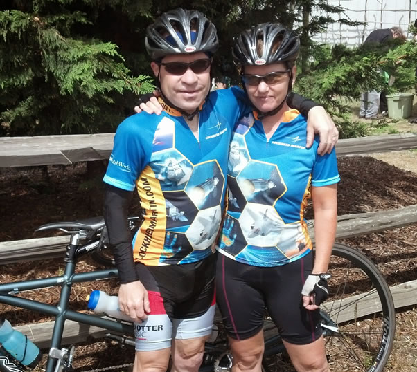 Daryl and Laura have been married for 25 years and will be celebrating their anniversary by taking their first Santana tandem tour in February to Hawaii. They hope to celebrate next year's wedding anniversary by purchasing a custom tandem! Laura says, “My reason for getting a tandem? So Daryl couldn't "drop" me! And because I was tired of Daryl lecturing me on how it was more beneficial for me to ride closer to his wheel and then speeding away, leaving me to squeak "gap" with my oxygen deprived lungs! Daryl's reason for getting a tandem? Because he loves me and wants to be with me!”
