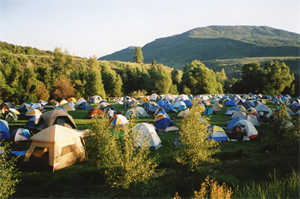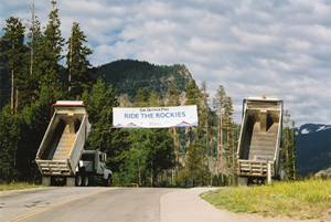 Summer weather can be unpredictable in the Rockies; with temperatures ranging from 100 degrees around the Royal Gorge (where I dumped a bottle of water over my head, too late to realize it wasn’t water, but my bottle of Gatorade), to waking up to frost on the outside of my tent and 30 degrees! I remember doing a gradual climb of 50 miles to the top of Lizard Head Pass and really looking forward to the 20 mile descent into Telluride. Tired from the long climb, and with the weather worsening, I had a very scary, chilly descent in rain and sleet on the way down! Some of the flatter areas get strong headwinds, or my least favorite, crosswinds, and getting pushed all over the road! The only time in RTR’s history when a day had to be canceled was in 2004. The first day we started in Boulder and encountered a down pour about 15 miles before getting to Estes Park, the first night’s stay. The SAGs were so busy, so my friend and I decided to tough it out. We put on our rain gear and made it into Estes Park and set up our tent in the rain. That night, it started snowing over Trail Ridge Road, where we were heading the next day on our way to Granby. When I woke up the next morning, we found out the road was closed, so no one got to ride their bikes that day. The staff, at the last minute got huge trucks to haul all our (rain-soaked from the day before) bikes, gear, and (2000+) riders around a different route to get us to Granby by that afternoon so we could continue on! It was truly impressive to witness the successful logistics of that day. We all celebrated heartily in sunny Granby with the town’s barbecue dinner and the beer truck!
