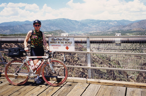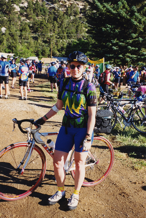 In Bicycling Magazine I read about one of the best multi-day bike events in the country, Ride the Rockies, and decided that was my next challenge. I signed up for my first RTR in 1999 and was chosen from the lottery. Excited and nervous about being able to ride over all those mountain passes, I bought a road bike and trained according to their suggestions. I grew up in Colorado, but now had lived in California for quite some time, so I wasn’t sure how I was going to handle the altitude. There was a real sense of camaraderie amongst the cyclists there, and they assured me that if I had trained well, I’d be OK. It turned out to be one of the best cycling experiences I’ve ever had.