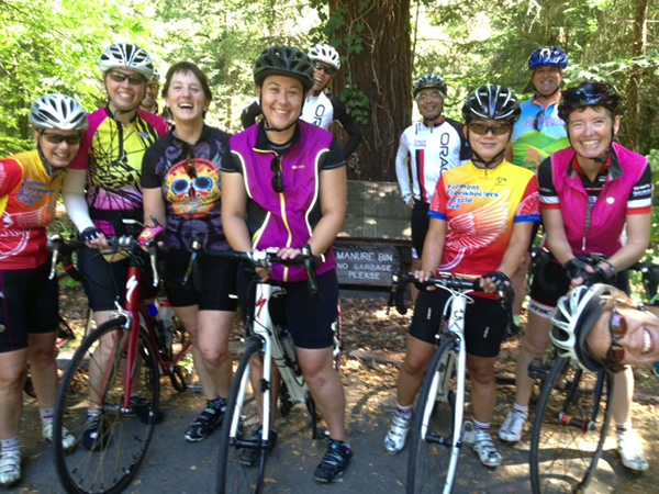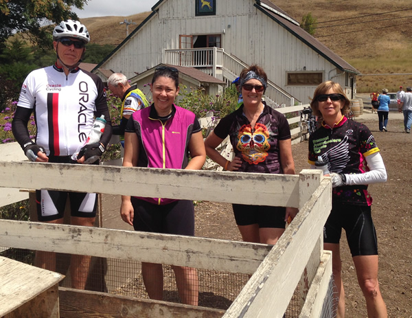July is a month full of exciting bicycle related events and traditions. There is FFBC’s yearly Fourth of July Pancake ride, the Annual Tour de Stooges, Pizza Rides on Wednesday nights, the Northwest Tandem Rally, Markleeville’s Death Ride and the Tour de France, just to name a few. This year marks the inaugural year of a new ride that “may” also become an annual event if Vanessa McDonnell is granted her wish. On July 12th Joyce Tanaka and Tina Boomershine led a ride to Harley’s Goat Farm, in Sebastopol, which happened to be the same day as the Death Ride. Twelve riders enjoyed amazing weather on that day as they climbed 6000 feet and covered 60 miles with their ride leaders. Because the ride was approximately half the climbing and distance of Markleeville’s event the group lovingly renamed it the “½ Death Ride of the FFBC”. Vanessa describes this ride as being one “for those who want to suffer, but not completely kill themselves.” Another perk from this ride was the cool watermelon slices served to the riders at the end of the ride. Let’s hope this ride becomes a new July tradition that is featured on the calendar for many years to come.
