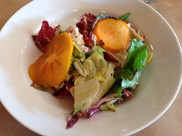 The first course was a delicious salad, followed by a liver paté bruschetta.