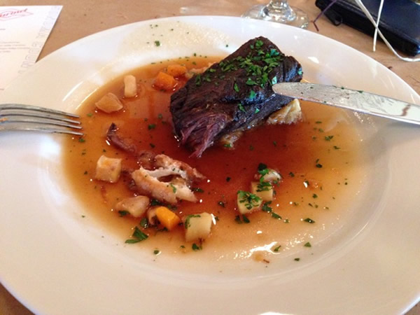 The main course was melt in your mouth Glazed Beef Short Bibs with Root Vegetables. It was so good I forgot to take a picture until I was half way done!