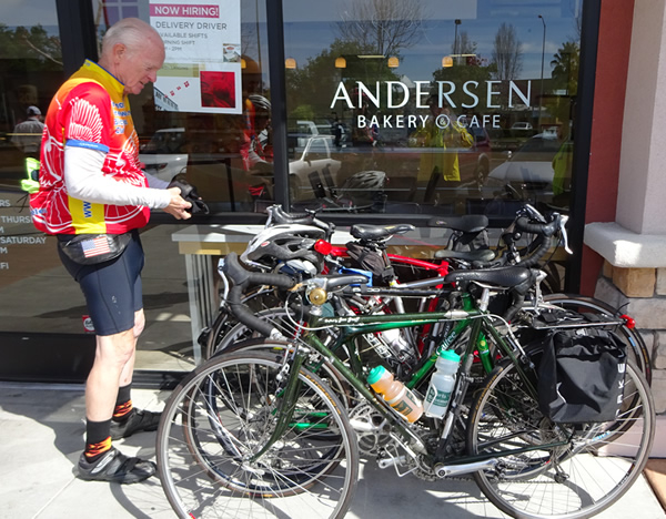 Lambert Caulfield inspecting the locked up bikes Photo courtesy of Jon Graff